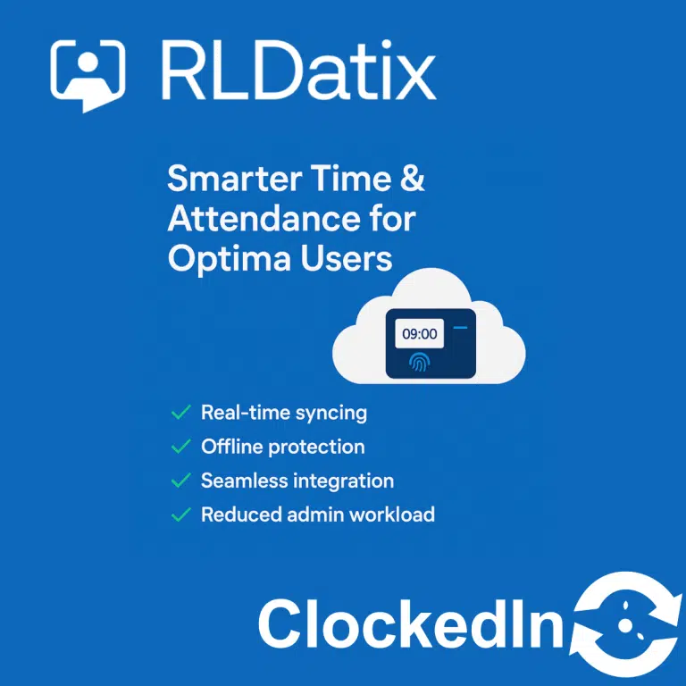 Attendance records from ClockedIn devices are securely sent to Optima, eliminating manual entry and reducing admin errors.