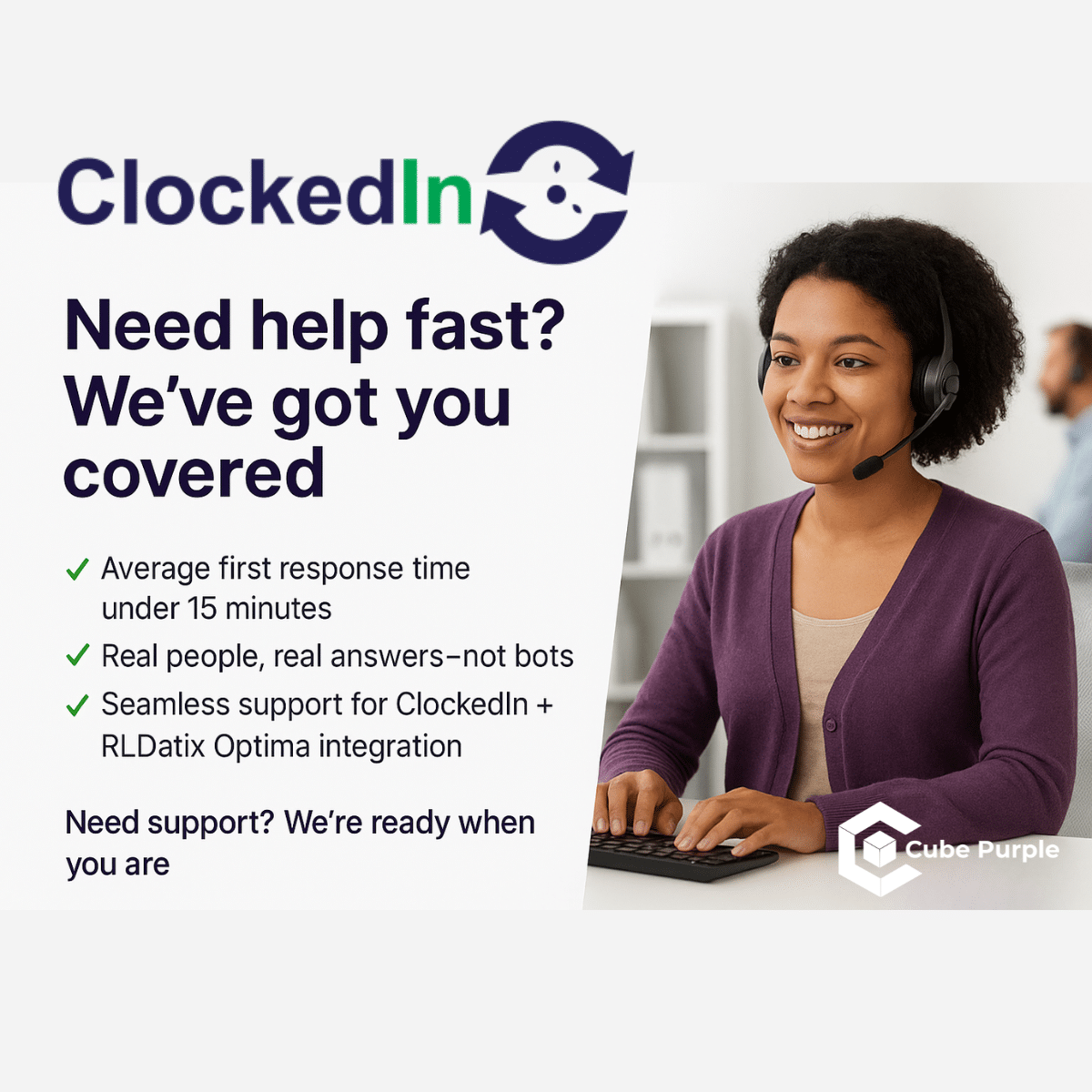 Meet the ClockedIn Support Team — Fast, Friendly, and Always Ready At Cube Purple, we know that great technology is only part of the story ...